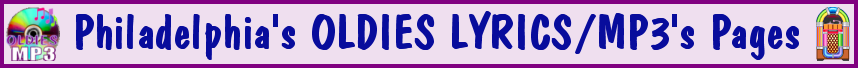 | Welcome to the Philadelphia Oldies Lyrics/MP3 Index Webpages which includes lyrics from every Oldies and ock Music song shown/listed here on this website. The listings here are listed in alphabetical order and include info of the songs composers and special album art too. Each lyrics page includes the song in both the MIDI and MP3 format, but the MP3 is just a short sound byte of 30 seconds in length, but the MIDI files will be added at a later time if available. All MP3's can be used as ringtones on your cell phone. All "LYRICS" of all the songs willalso include other important info too. Consider either a small purchase or a donation here at the NEW! 'PHILADELPHIA OLDIES LYRICS/MP3 Music Homepage'. Thanks for visiting and ENJOY ALL THE OLDIES MUSIC!!!! |