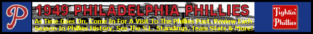 Aug. 21st ~ A pop bottle barrage with one out in the top of the 9th inning of game of a DH resulted in a forfeit win for the Giants. New York was ahead 3-2 when umpire George Barr ruled that Richie Ashburn had missed a diving catch of a ball off the bat of Joe Lafata, scoring Willard Marshall with the fourth run. The players objected, but when the call was not reversed the fans got involved. The barrage continued despite pleas over the load speaker system. After waiting more than 15 minutes the game was called. |