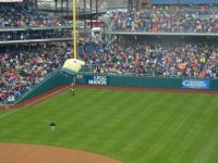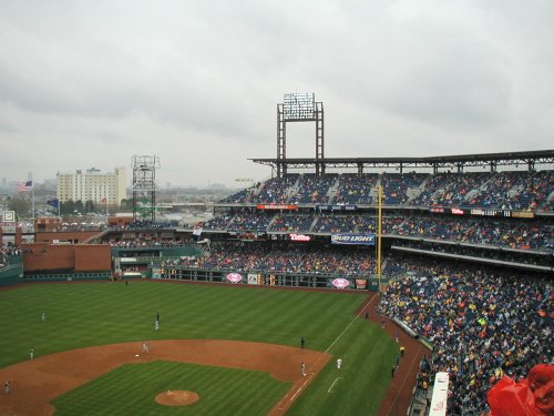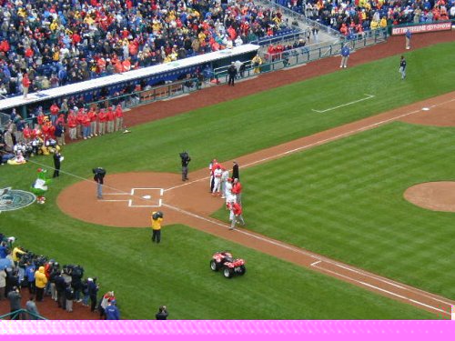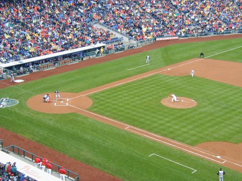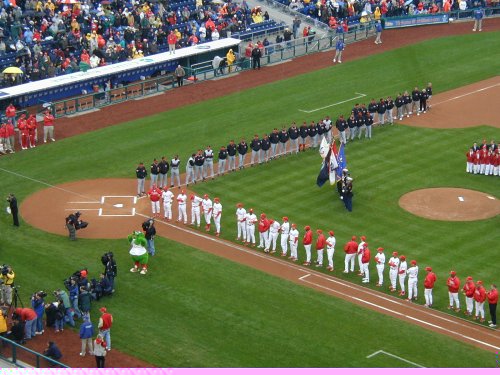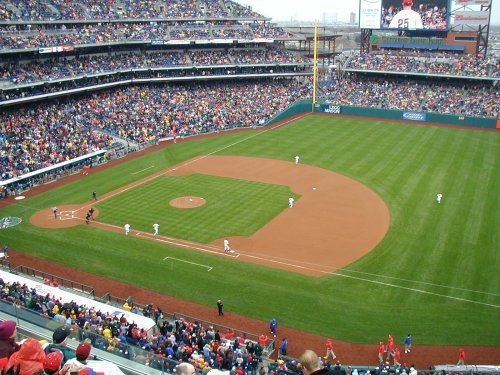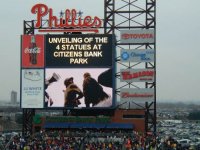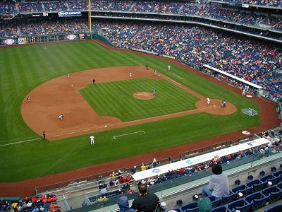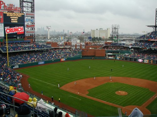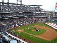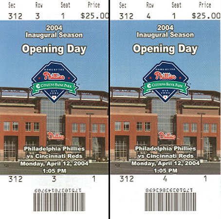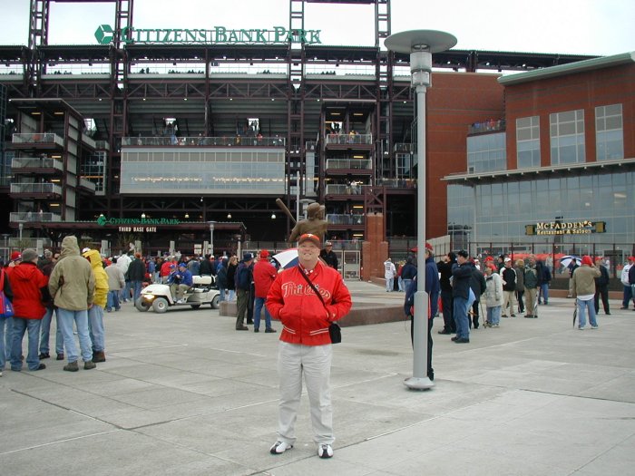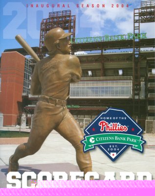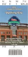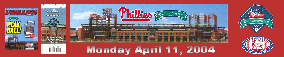| Welcome to the the Philadelphia Phillies grand opening of the brand new baseball showplace called "Citizen's Bank Park". The new ballpark opened on a chilly, windy rainy afternoon whcih saw the Cincinnati Reds win the game 4-1. Bobby Abreu of the Phillies hit the first ever homerun in the new jewel of Major League Baseball. |